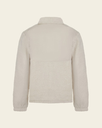 100% polyester. Coupe oversize. Matière en sherpa avec doublure principale en jersey. Finition en biais ton sur ton à l’encolure, aux emmanchures, au milieu devant et en bas de vêtement.